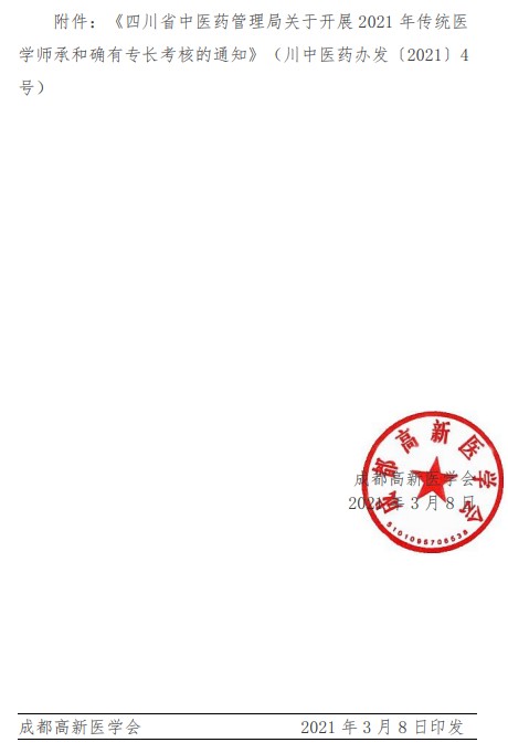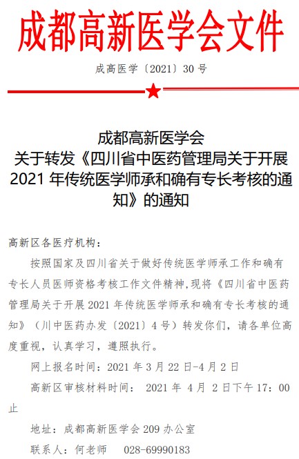 成都高新醫(yī)學(xué)會(huì)2021年傳統(tǒng)醫(yī)學(xué)師承和確有專(zhuān)長(zhǎng)考試報(bào)名通知已發(fā)布,報(bào)名時(shí)間按照四川省中醫(yī)藥管理局下發(fā)的文件進(jìn)行,醫(yī)學(xué)教育網(wǎng)編輯提醒您及時(shí)報(bào)名。