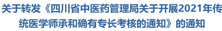 陽市衛(wèi)生健康局關(guān)于轉(zhuǎn)發(fā)《四川省中醫(yī)藥管理局關(guān)于開展2021年傳統(tǒng)醫(yī)學(xué)師承和確有專長考核的通知》