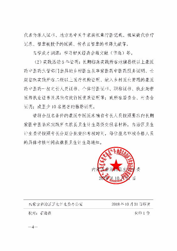 呼倫貝爾發(fā)布2018年蒙醫(yī)中醫(yī)醫(yī)術(shù)確有專(zhuān)長(zhǎng)人員醫(yī)師資格考核報(bào)名工作的公告,詳細(xì)信息如下: