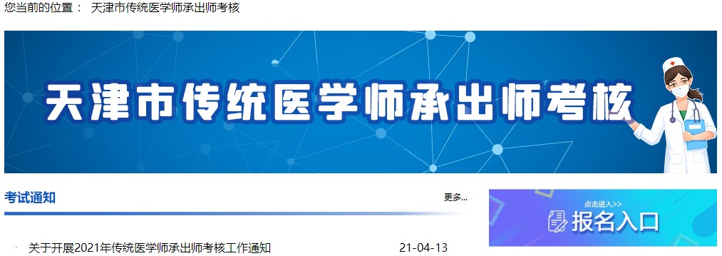 注意!天津考區(qū)2021年傳統(tǒng)醫(yī)學(xué)師承出師考核報(bào)名入口已開(kāi)通!