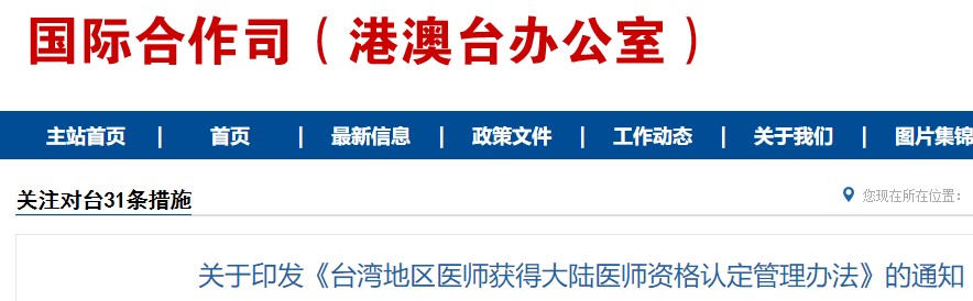 臺(tái)灣地區(qū)醫(yī)師獲得大陸醫(yī)師資格 認(rèn)定管理辦法