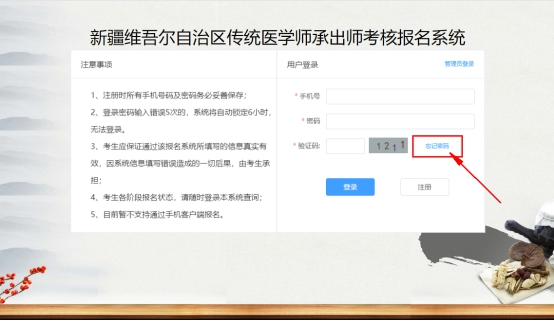 新疆維吾爾自治區(qū)傳統(tǒng)醫(yī)學師承出師考核報名系統(tǒng)如何找回登錄密碼?根據(jù)《新疆2021年傳統(tǒng)醫(yī)學師承人員出師考核報名及考試通知》2021年自治區(qū)傳統(tǒng)醫(yī)學師承人員出師考核工作啟用《自治區(qū)傳統(tǒng)醫(yī)學師承出師考核報名系統(tǒng)》(報名系統(tǒng)網(wǎng)址http://202.100.182.101:8080/municipality-exam-client/traditional/index.html#/login)。新疆維吾爾自治區(qū)傳統(tǒng)醫(yī)學師承出師考核報名系統(tǒng)找回密碼的方法分享如下,醫(yī)學教育網(wǎng)編輯為您整理。輔導課程>>