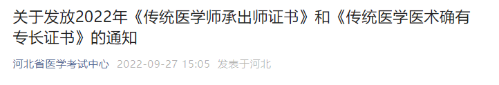 河北省發(fā)布“關(guān)于發(fā)放2022年《傳統(tǒng)醫(yī)學(xué)師承出師證書》和《傳統(tǒng)醫(yī)學(xué)醫(yī)術(shù)確有專長證書》的通知”公告,為幫助各位考生了解,在此醫(yī)學(xué)教育網(wǎng)小編為大家整理如下內(nèi)容: