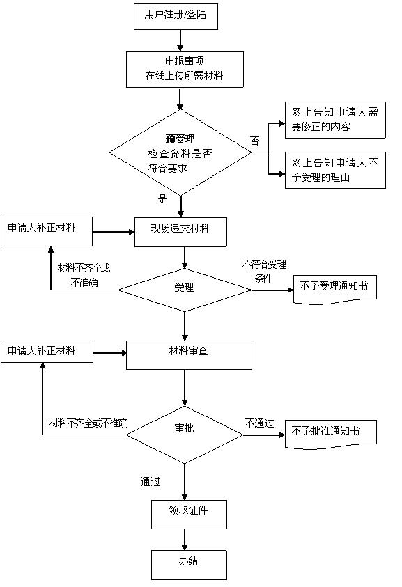 接收受理人員對材料進(jìn)行預(yù)審,提出預(yù)審意見,作出受理決定。申請人符合申請資格,且材料齊全、格式規(guī)范、符合法定形式的,預(yù)受理,出具電子版《預(yù)受理回執(zhí)》;申請人申請材料不齊全,一次性告知,并在網(wǎng)上出具《申請材料補(bǔ)正告知書》,如果不符合受理?xiàng)l件,在網(wǎng)上出具《不予受理通知書》。預(yù)受理后,申請人按約定方式自行或郵寄向行政服務(wù)中心窗口提交紙質(zhì)材料,接件受理人員當(dāng)場與網(wǎng)上電子材料審核無誤后予以正式受理。