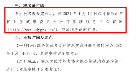 準(zhǔn)考證打印時間:2021年1月12日起可登陸山東省衛(wèi)生健康委員會醫(yī)療管理服務(wù)中心官網(wǎng)http://www.sdygzx.cn/,完成準(zhǔn)考證的打印。