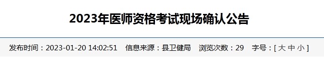 根據(jù)寧波市醫(yī)師資格考試領(lǐng)導(dǎo)小組公告的規(guī)定,2023年醫(yī)師資格考試網(wǎng)上報名時間自2023年2月1日起至2023年2月15日24時,現(xiàn)將我縣現(xiàn)場確認有關(guān)工作作如下安排: