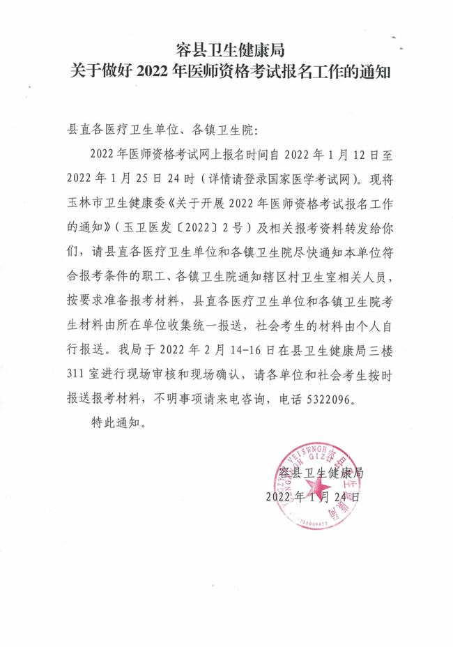 2022年中醫(yī)執(zhí)業(yè)醫(yī)師考試容縣考點現(xiàn)場審核時間、地點