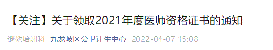 重慶市九龍坡區(qū)關(guān)于領(lǐng)取2021年度中醫(yī)執(zhí)業(yè)醫(yī)師資格證書的通知