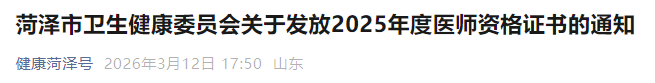根據(jù)山東省人社廳、山東省衛(wèi)健委要求,現(xiàn)將2025年度醫(yī)師資格證書予以發(fā)放。請各位考生(僅限于在菏澤考點參加考試的考生)掃描通知中二維碼填寫考生收件信息,我單位將通過郵政快遞方式予以郵寄給各位考生,請各位考生注意簽收。如果掃碼不成功請聯(lián)系李經(jīng)理15806796696。
