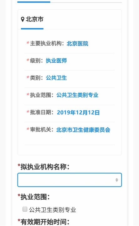 (2)如果要保留原執(zhí)業(yè)地點的執(zhí)業(yè)注冊信息仍然有效,在個人端業(yè)務申請?zhí)幉皇寝k理“變更”業(yè)務,而是直接辦理“注冊”業(yè)務,注冊使用的“執(zhí)業(yè)資格”和“注冊執(zhí)業(yè)范圍”要與原執(zhí)業(yè)地點的執(zhí)業(yè)注冊信息完全一致才可以,否則,原執(zhí)業(yè)地點的執(zhí)業(yè)注冊信息全部失效。