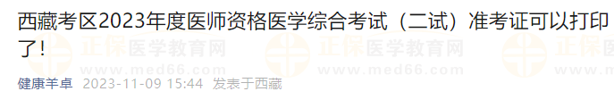 西藏考區(qū)2023年度醫(yī)師資格醫(yī)學(xué)綜合考試(二試)準(zhǔn)考證可以打印了!