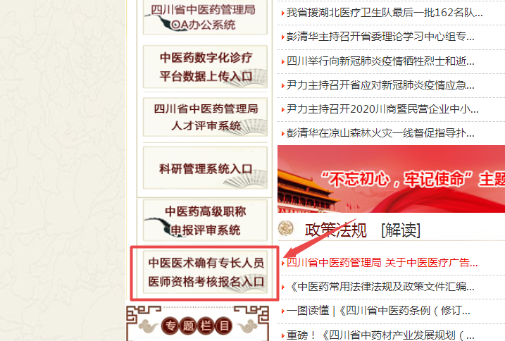 四川省中醫(yī)醫(yī)術(shù)確有專(zhuān)長(zhǎng)人員醫(yī)師資格考核報(bào)名入口:http://sctcm.sc.gov.cn/