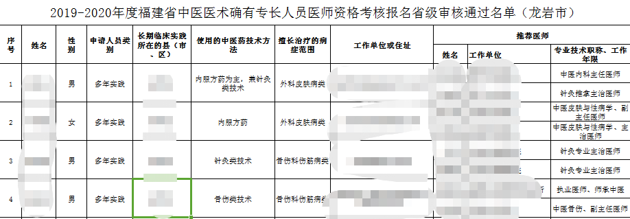 對于“龍巖市2020年中醫(yī)專長醫(yī)師證考核報名通過審核人員名單公示”的問題,相信很多考生都想了解,為了讓大家更清楚地了解相關(guān)信息,醫(yī)學(xué)教育網(wǎng)小編搜集整理了“龍巖市2020年中醫(yī)專長醫(yī)師證考核報名通過審核人員名單公示”的官方文件,希望對考生有所幫助。