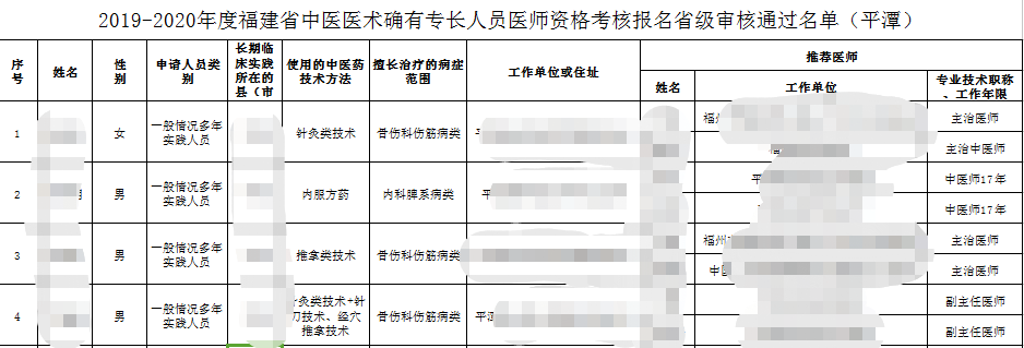 關(guān)于“2019-2020年福建平潭中醫(yī)醫(yī)術(shù)確有專長人員醫(yī)師資格考核報名通過審核人員”的內(nèi)容,醫(yī)學(xué)教育網(wǎng)小編得知很多考生比較關(guān)心,為此小編搜集整理了相關(guān)官方文件,詳情如下: