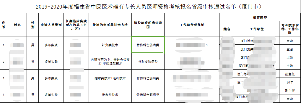 對(duì)于“福建廈門2019-2020年中醫(yī)醫(yī)術(shù)確有專長(zhǎng)人員醫(yī)師資格考核報(bào)名審核通過人員公示”的問題,相信很多考生都想了解,為了讓大家更清楚地了解相關(guān)信息,醫(yī)學(xué)教育網(wǎng)小編搜集整理了“福建廈門2019-2020年中醫(yī)醫(yī)術(shù)確有專長(zhǎng)人員醫(yī)師資格考核報(bào)名審核通過人員公示”的官方文件,希望對(duì)考生有所幫助。