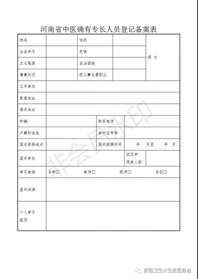 1.《河南省中醫(yī)確有專長登記備案表》;