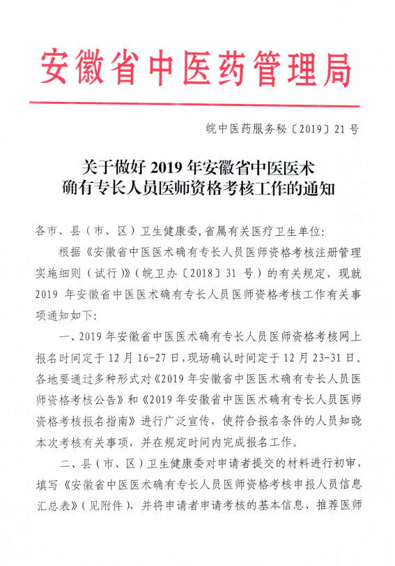 關(guān)于做好2019年中醫(yī)醫(yī)術(shù)確有專長(zhǎng)人員醫(yī)師資格考核工作的通知
