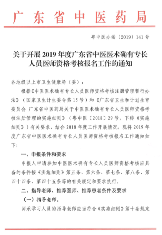 關(guān)于轉(zhuǎn)發(fā)省中醫(yī)藥局關(guān)于開展2019年度廣東省中醫(yī)醫(yī)術(shù)確有專長人員醫(yī)師資格考核報名工作的通知