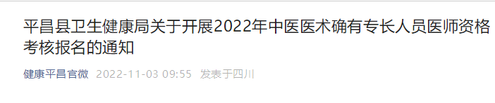 平昌縣衛(wèi)生健康局關(guān)于開(kāi)展2022年中醫(yī)醫(yī)術(shù)確有專長(zhǎng)人員醫(yī)師資格考核報(bào)名的通知