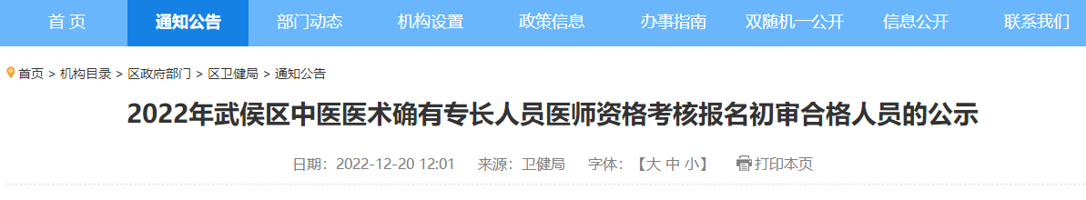 2022年武侯區(qū)中醫(yī)醫(yī)術(shù)確有專長人員醫(yī)師資格考核報(bào)名初審合格人員的公示