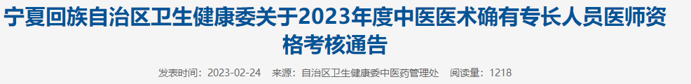 寧夏回族自治區(qū)衛(wèi)生健康委關(guān)于2023年度中醫(yī)醫(yī)術(shù)確有專長(zhǎng)人員醫(yī)師資格考核通告,醫(yī)學(xué)教育網(wǎng)老師為大家整理總結(jié)如下,希望可以幫助到各位: