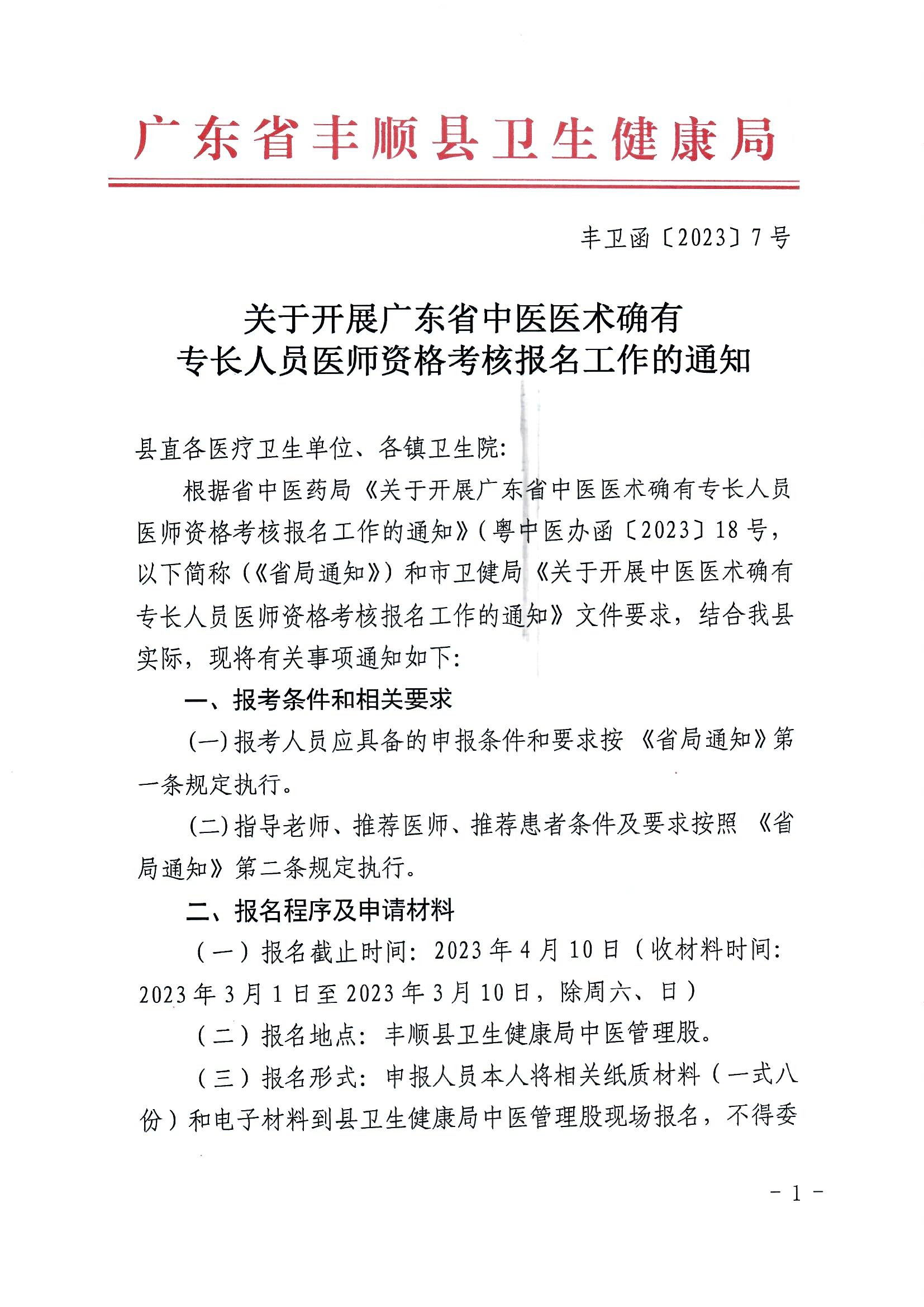 附件1:粵中醫(yī)辦函〔2023〕18號-關(guān)于開展廣東省中醫(yī)醫(yī)術(shù)確有專長人員醫(yī)師資格考核報名工作的通知