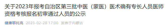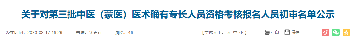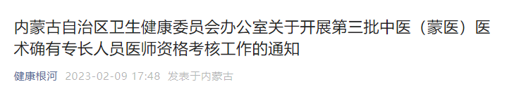 內蒙古自治區(qū)關于開展第三批中醫(yī)(蒙醫(yī))醫(yī)術確有專長人員醫(yī)師資格考核工作的通知