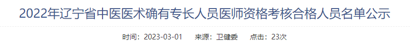2022年遼寧省中醫(yī)醫(yī)術(shù)確有專長(zhǎng)人員醫(yī)師資格考核合格人員名單