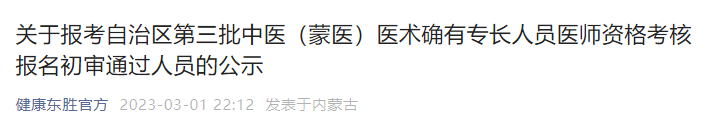 全國2023年中醫(yī)醫(yī)術(shù)確有專長人員醫(yī)師資格考核報名通知匯總