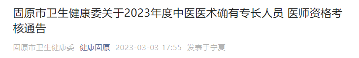 關(guān)于開展2023年寧夏回族自治區(qū)各地中醫(yī)醫(yī)術(shù)確有專長人員醫(yī)師資格考核報名的通知