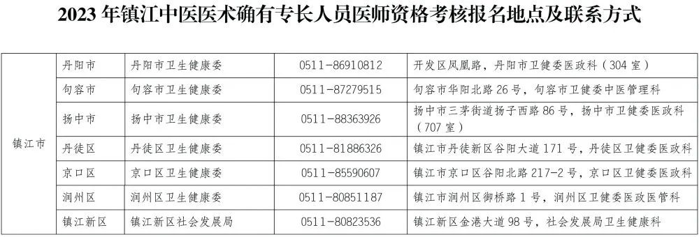 (三)2023年鎮(zhèn)江中醫(yī)醫(yī)術(shù)確有專長(zhǎng)人員醫(yī)師資格考核報(bào)名地點(diǎn)及聯(lián)系方式: