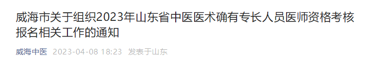 威海市關(guān)于組織2023年山東省中醫(yī)醫(yī)術(shù)確有專長人員醫(yī)師資格考核報名相關(guān)工作的通知