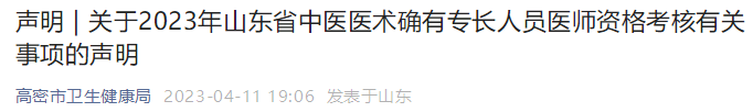 關(guān)于2023年山東省中醫(yī)醫(yī)術(shù)確有專長人員醫(yī)師資格考核有關(guān)事項(xiàng)的聲明
