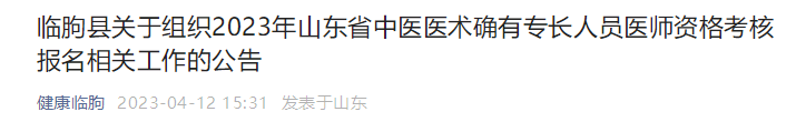 關(guān)于開展2023年山東考區(qū)各地中醫(yī)醫(yī)術(shù)確有專長人員醫(yī)師資格考核報(bào)名的通知
