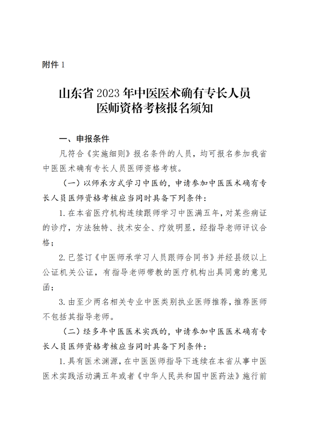 附件:1.山東省2023年中醫(yī)醫(yī)術(shù)確有專長人員醫(yī)師資格考核報(bào)名須知