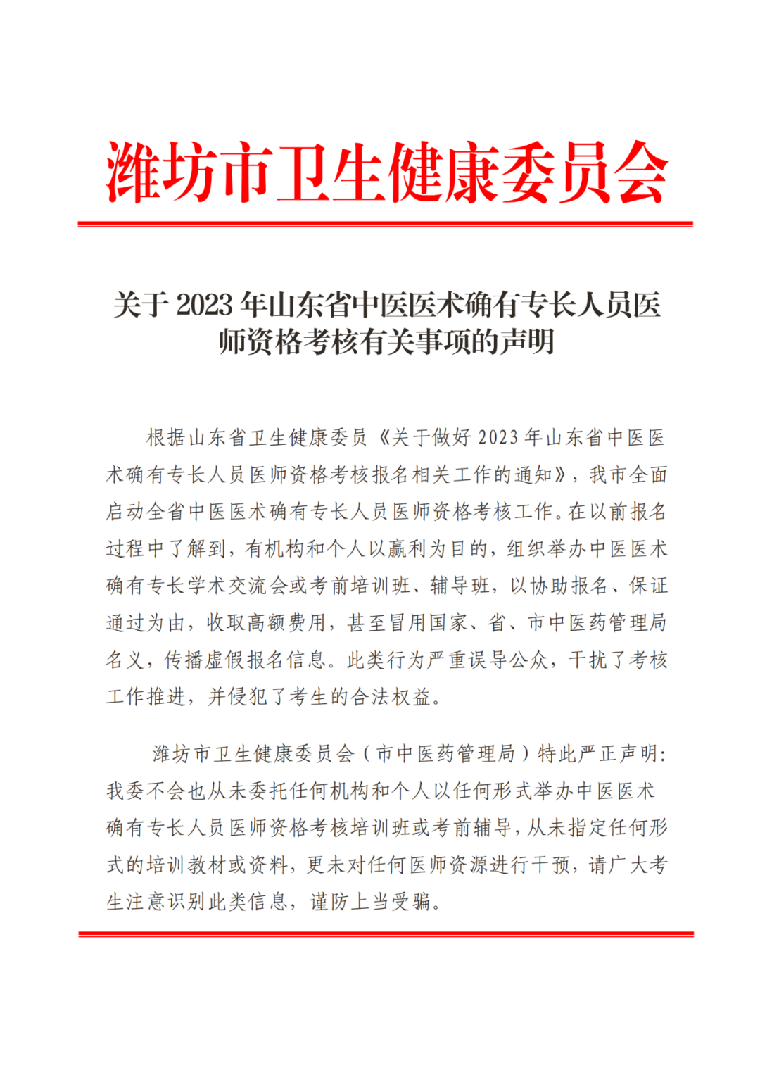 根據(jù)山東省衛(wèi)生健康委印發(fā)《山東省中醫(yī)醫(yī)術(shù)確有專長人員醫(yī)師資格考核注冊(cè)管理實(shí)施細(xì)則》(魯衛(wèi)發(fā)〔2021〕3號(hào),以下簡稱《實(shí)施細(xì)則》)、《山東省衛(wèi)生健康委員會(huì)關(guān)于組織開展2023年度山東省中醫(yī)醫(yī)術(shù)確有專長人員醫(yī)師資格考核相關(guān)工作的通知》(魯衛(wèi)函〔2023〕144號(hào))有關(guān)規(guī)定和濰坊市衛(wèi)生健康委《關(guān)于做好濰坊市2023年山東省中醫(yī)醫(yī)術(shù)確有專長人員醫(yī)師資格考核報(bào)名相關(guān)工作的通知》要求,我縣定于4月13日啟動(dòng)省2023年中醫(yī)醫(yī)術(shù)確有專長人員醫(yī)師資格考核報(bào)名工作,凡符合《實(shí)施細(xì)則》報(bào)名條件的人員,均可報(bào)名參加我省中醫(yī)醫(yī)術(shù)確有專長人員醫(yī)師資格考核。具體報(bào)名事宜請(qǐng)參照《山東省2023年中醫(yī)醫(yī)術(shù)確有專長人員醫(yī)師資格考核報(bào)名須知》(見附件1)。
