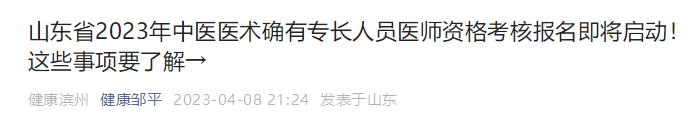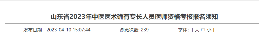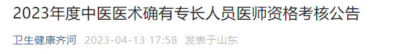 關(guān)于開(kāi)展2023年山東考區(qū)各地中醫(yī)醫(yī)術(shù)確有專長(zhǎng)人員醫(yī)師資格考核報(bào)名的通知
