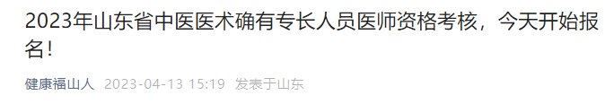關(guān)于開(kāi)展2023年山東考區(qū)各地中醫(yī)醫(yī)術(shù)確有專長(zhǎng)人員醫(yī)師資格考核報(bào)名的通知