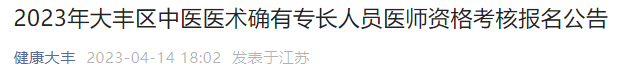 江蘇省2023年大豐區(qū)中醫(yī)醫(yī)術(shù)確有專(zhuān)長(zhǎng)人員醫(yī)師資格考核報(bào)名公告,醫(yī)學(xué)教育網(wǎng)老師為大家整理總結(jié)如下,希望可以幫助到各位: