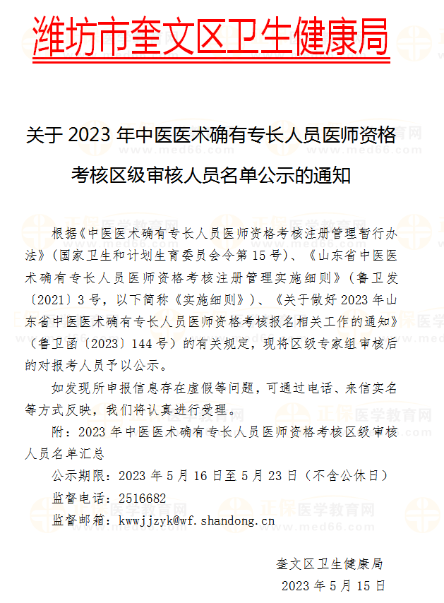中醫(yī)醫(yī)術(shù)確有專長(zhǎng)動(dòng)態(tài):山東濰坊市奎文區(qū)審核人員名單公示!考生需抓緊時(shí)間根據(jù)公示查看審核相關(guān)信息,下方醫(yī)學(xué)教育網(wǎng)老師整理官方通知: