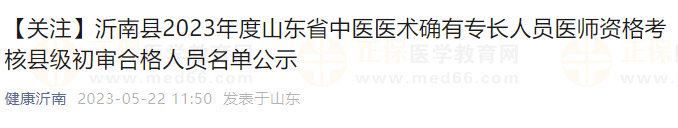 沂南縣2023年度山東省中醫(yī)醫(yī)術(shù)確有專長(zhǎng)人員醫(yī)師資格考核縣級(jí)初審合格人員名單公示