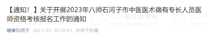 關(guān)于開展2023年八師石河子市中醫(yī)醫(yī)術(shù)確有專長(zhǎng)人員醫(yī)師資格考核報(bào)名工作的通知