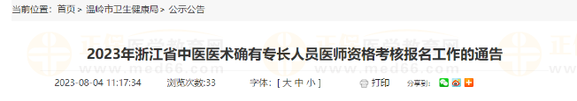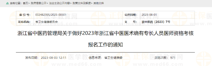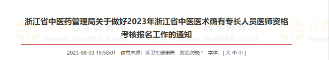 浙江省中醫(yī)藥管理局關(guān)于做好2023年浙江省中醫(yī)醫(yī)術(shù)確有專長(zhǎng)人員醫(yī)師資格考核報(bào)名工作的通知