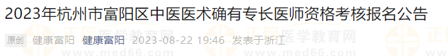 根據(jù)《浙江省衛(wèi)生計(jì)生委關(guān)于印發(fā)浙江省中醫(yī)醫(yī)術(shù)確有專長(zhǎng)人員醫(yī)師資格考核注冊(cè)管理實(shí)施細(xì)則的通知》(浙衛(wèi)發(fā)〔2018〕34號(hào))、《浙江省衛(wèi)生健康委員會(huì)關(guān)于修改<浙江省中醫(yī)醫(yī)術(shù)確有專長(zhǎng)人員醫(yī)師資格考核注冊(cè)管理實(shí)施細(xì)則>的決定》(浙衛(wèi)發(fā)〔2019〕39 號(hào))和《浙江省中醫(yī)藥管理局關(guān)于做好2023年浙江省中醫(yī)醫(yī)術(shù)確有專長(zhǎng)人員醫(yī)師資格考核報(bào)名工作的通知》(浙中醫(yī)藥〔2023〕7號(hào))有關(guān)規(guī)定,現(xiàn)將富陽(yáng)區(qū)2023年中醫(yī)醫(yī)術(shù)確有專長(zhǎng)人員醫(yī)師資格考核網(wǎng)上報(bào)名工作關(guān)事項(xiàng)公告如下: