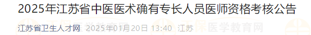 根據(jù)《中華人民共和國中醫(yī)藥法》《中醫(yī)醫(yī)術(shù)確有專長人員醫(yī)師資格考核注冊管理暫行辦法》《江蘇省中醫(yī)醫(yī)術(shù)確有專長人員醫(yī)師資格考核注冊管理實(shí)施細(xì)則》規(guī)定,現(xiàn)將2025年全省中醫(yī)醫(yī)術(shù)確有專長人員醫(yī)師資格考核工作有關(guān)事項(xiàng)公告如下: