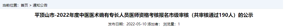 平頂山市2022年度中醫(yī)醫(yī)術(shù)確有專長(zhǎng)人員醫(yī)師資格考核報(bào)名市級(jí)審核(共審核通過190人)的公示,醫(yī)學(xué)教育網(wǎng)老師為大家整理總結(jié)如下,希望可以幫助到各位: