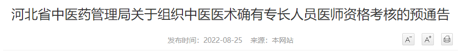 河北省中醫(yī)藥管理局關(guān)于組織中醫(yī)醫(yī)術(shù)確有專長人員醫(yī)師資格考核的預(yù)通告