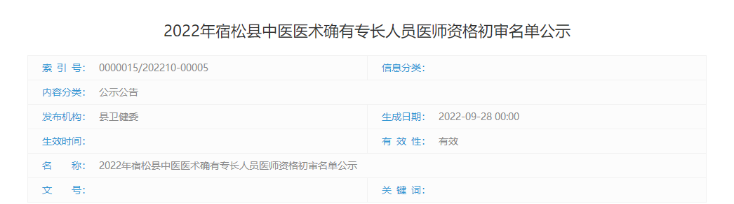原文標(biāo)題:2022年宿松縣中醫(yī)醫(yī)術(shù)確有專(zhuān)長(zhǎng)人員醫(yī)師資格初審名單公示