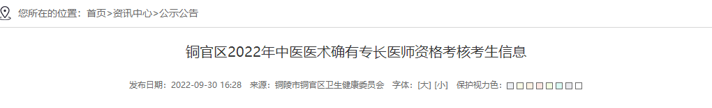 原文標(biāo)題:銅官區(qū)2022年中醫(yī)醫(yī)術(shù)確有專長醫(yī)師資格考核考生信息