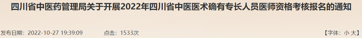 根據(jù)《中醫(yī)醫(yī)術(shù)確有專長(zhǎng)人員醫(yī)師資格考核注冊(cè)管理暫行辦法》和《四川省中醫(yī)醫(yī)術(shù)確有專長(zhǎng)人員醫(yī)師資格考核注冊(cè)管理實(shí)施細(xì)則(暫行)》的規(guī)定,現(xiàn)將我省2022年中醫(yī)醫(yī)術(shù)確有專長(zhǎng)人員醫(yī)師資格考核報(bào)名事項(xiàng)通知如下。
